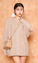 やや丸みのあるシルエットが特徴的なこちらのカーディガンは、