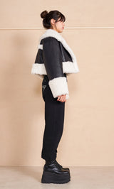 プードルファーとレザー素材で仕立てた、
